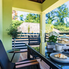 Alle Räume sind klimatisiert, während die Fußbodenheizung in den Wintermonaten für gleichmäßige Wärme sorgt. Im Wohnzimmer befindet sich ein Kamin, der bei Bedarf genutzt werden kann. Den Mietern stehen ein privater Pool mit Liegen sowie ein Grill und ein gestalteter Außenbereich zur Verfügung.