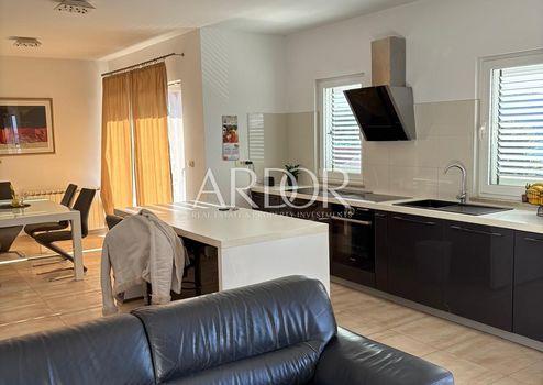 Zum Verkauf steht eine großzügige und äußerst hochwertige Wohnung in Barbat auf der Insel Rab, gelegen im zweiten Obergeschoss eines Wohngebäudes, mit zugehörigem Dachgeschoss. Diese Immobilie stellt sowohl für die Eigennutzung als auch als Investition zur touristischen Vermietung eine hervorragende Gelegenheit dar.