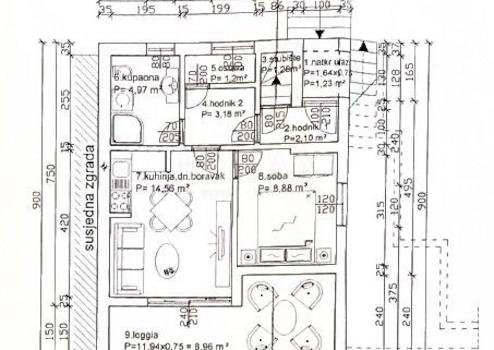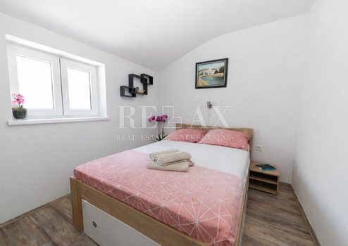 Die Immobilie besteht aus dem Erdgeschoss und zwei Obergeschossen, und ein besonderer Vorteil dieses Hauses ist die Aufteilung in drei getrennte Apartments, wobei jedes Apartment über einen eigenen separaten Eingang verfügt. Im Erdgeschoss befindet sich ein Apartment, das aus einem Wohnzimmer, einer Küche, einem Schlafzimmer und einem Badezimmer besteht. Im ersten Obergeschoss befindet sich ein Apartment mit einem Schlafzimmer, einem Wohnzimmer mit Ausgang zur Loggia, einer Küche und einem Badezimmer. Im zweiten Obergeschoss befindet sich ein Apartment mit zwei Schlafzimmern, einer Küche, einem Wohnzimmer mit Ausgang zur Loggia und einem Badezimmer. Jedes Apartment hat Meerblick, was die Attraktivität der Immobilie sowohl für den Aufenthalt als auch für die Vermietung zusätzlich erhöht.