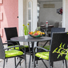 Der Außenbereich ist gepflegt und funktional und umfasst einen terrassenförmig angelegten Garten, einen Grillplatz, einen Abstellraum sowie drei Stellplätze, von denen einer überdacht ist. Der Außenbereich bietet eine angenehme Atmosphäre zum Verweilen, für geselliges Beisammensein und zur Erholung. Jede Wohneinheit ist mit einer eigenen Klimaanlage ausgestattet, es wurden PVC-Fenster und -Türen eingebaut, und zusätzliche Sicherheit wird durch Videoüberwachung gewährleistet.