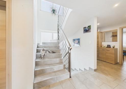 Im Inneren des Hauses setzt sich der hochwertige Eindruck konsequent fort. Die gesamte Haustechnik wurde auf einen modernen Stand gebracht, wobei insbesondere die Kombination aus einer ETA-Pelletheizung sowie einer Photovoltaikanlage mit Speicherlösung eine effiziente und nachhaltige Energieversorgung sicherstellt. Dies wirkt sich nicht nur positiv auf die Betriebskosten aus, sondern entspricht auch den aktuellen Anforderungen an zukunftsorientiertes Wohnen.