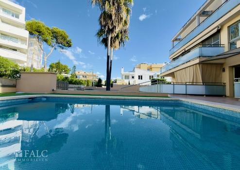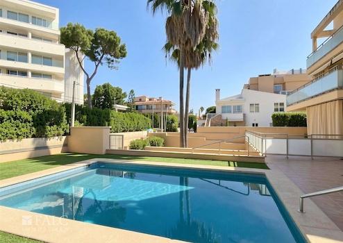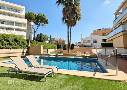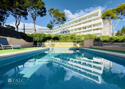 Die Gemeinschaftsanlage besticht durch ihre sehr gepflegte Erscheinung mit einem großzügigen Poolbereich und einer Sonnenterrasse mit Liegen. Hier genießen Sie entspannte Stunden unter der mallorquinischen Sonne und erleben mediterranes Lebensgefühl in seiner schönsten Form.