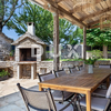 Zur Ausstattung im Außenbereich gehören ein 49 m² großer Swimmingpool, eine Sommerküche und ein 414 m² großer, angelegter Garten – ideal zum Entspannen im Freien. Die Villa verfügt zudem über einen separaten Technikraum mit Heizkessel und Warmwasserspeicher, was die Praktikabilität weiter erhöht. Zwei Parkplätze stehen ebenfalls zur Verfügung.