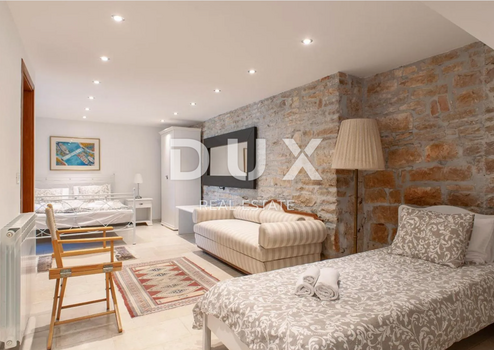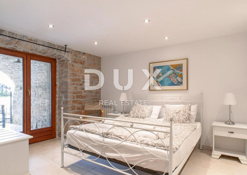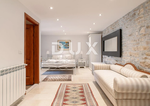 Die Villa besticht durch authentische Details wie originale Steinmauern, weiße Deckenbalken und Holzböden, die eine behagliche und elegante Atmosphäre schaffen. Entstanden aus der Verschmelzung zweier Steinhäuser, begeistert das Interieur mit seiner Großzügigkeit und luxuriösen Ausstattung.