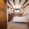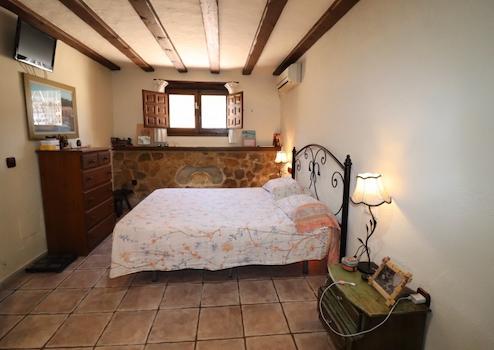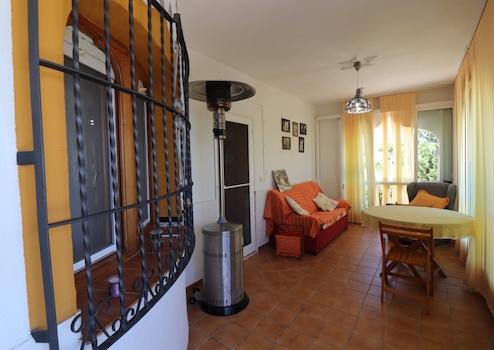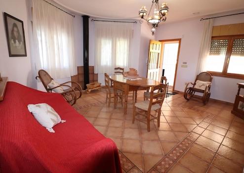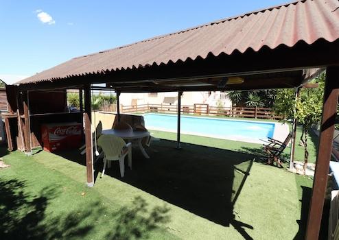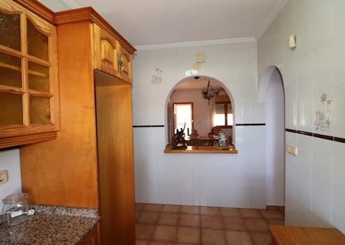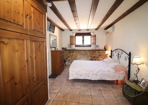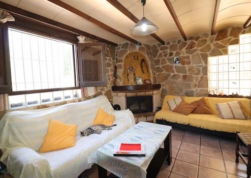 Die Villa erstreckt sich über zwei Ebenen auf einem großzügigen 1.140 m² Grundstück und überzeugt durch liebevolle Details wie sichtbare Holzbalkendecken, einen Wohnbereich mit charakteristischem Eckkamin sowie eine geräumige, modern ausgestattete Küche mit stilvollen Holzbogentüren, die in flexibel nutzbare Räume übergehen. Das Erdgeschoss umfasst Schlafzimmer und ein Familienbad, während die obere Ebene über einen separaten Wohnbereich mit weiterer Küche, zwei Doppelzimmern, einem Hauptschlafzimmer mit eigenem Bad sowie einem zusätzlichen Badezimmer verfügt. Über die überdachte, teilweise verglaste Terrasse gelangen Sie direkt zum privaten 10 x 5 Meter großen Pool, umgeben von einem liebevoll angelegten Garten mit Bäumen, Sträuchern und Pflanzen. Von dort führen Treppen zum Solarium, von dem Sie einen herrlichen Blick auf die umliegende Landschaft und die Berge genießen.