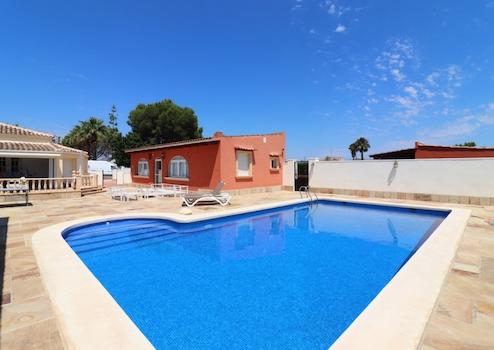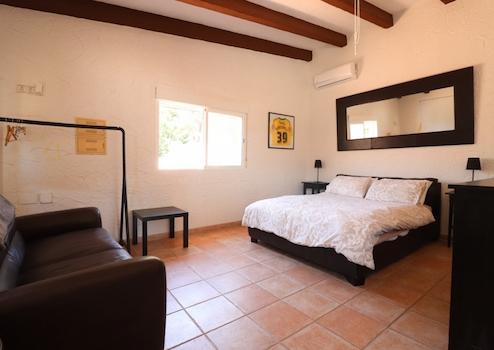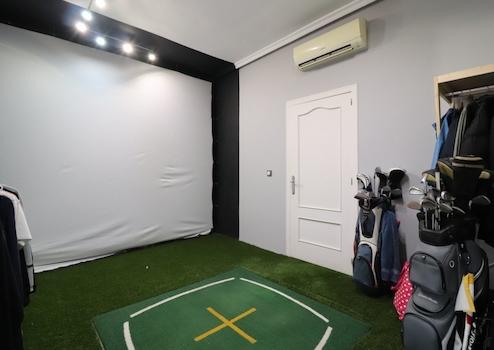 Die Hauptvilla beeindruckt durch vier Schlafzimmer und drei Badezimmer sowie ein zusätzliches Gäste-WC. Das Master-Schlafzimmer verfügt über einen großzügigen begehbaren Kleiderschrank und ein luxuriöses Badezimmer mit Badewanne und Dusche, während zwei weitere Schlafzimmer ebenfalls über eigene Bäder verfügen. Ein weiteres Zimmer wird aktuell als Golf-Simulator genutzt. Die moderne Landhausküche besticht durch hochwertige Ausstattung und einen direkten Zugang zur Terrasse, die einen herrlichen Blick auf den privaten Pool bietet.