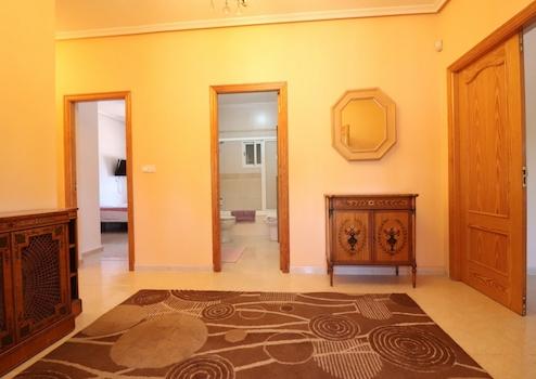 Die großzügige, ebenerdige Villa bietet auf 235 m² Wohnfläche ein harmonisches Raumkonzept: Vom überdachten Eingangsbereich gelangt man in die einladende Diele, weiter in das geschwungene Wohnzimmer mit Kamin und angrenzendem Essbereich. Eine weite Bogenöffnung führt zur modernen, voll ausgestatteten Küche mit Hauswirtschaftsraum und direktem Ausgang in den Garten. Drei komfortable Schlafzimmer, alle mit Deckenventilatoren, sowie ein Familienbad und ein en-suite Duschbad im Hauptschlafzimmer sorgen für entspannten Wohnkomfort.