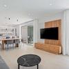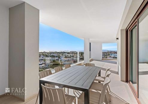 Außenbereich: Große Terrassen mit Sommerküche (in den Penthäusern), Solarium mit Dusche und ein gemeinschaftlicher Salzwasser-Pool im ersten Stock inklusive Chill-out-Bereich.