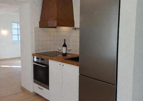 * Möblierte Kochnische mit großem Kühl-/Gefrierschrank