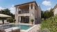 Die Villa ist im authentischen mediterranen Stil mit Steinelementen und sorgfältig geplanter Beleuchtung gestaltet.