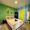 Im Hochparterre befinden sich drei Zimmer mit jeweils eigenem Bad, ein Gemeinschaftsraum, eine Küchenzeile und ein Waschraum. Im ersten Obergeschoss gibt es drei weitere Zimmer, zwei Badezimmer und eine Terrasse.