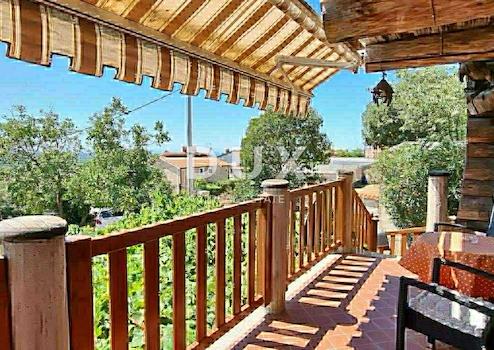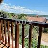 Eine hölzerne Innentreppe führt in den ersten Stock mit drei Schlafzimmern, von denen eines Zugang zu einer Terrasse mit herrlichem Meerblick bietet.