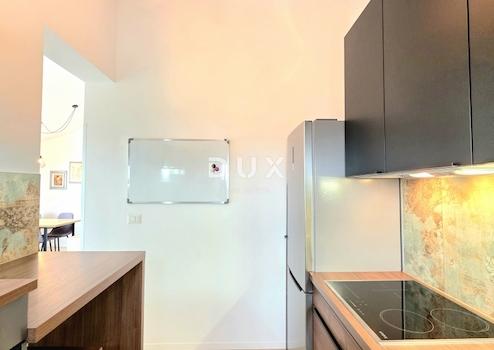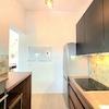 Die Küche ist etwas abgetrennt, funktional eingerichtet und perfekt auf den täglichen Gebrauch abgestimmt. So entsteht die ideale Balance zwischen Offenheit und Funktionalität.