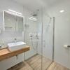 Das Badezimmer ist komfortabel und modern eingerichtet und mit Dusche, WC und Bidet ausgestattet. Die Fußbodenheizung sorgt für zusätzlichen Komfort. Anschlüsse für Waschmaschine und Trockner sind ebenfalls vorhanden.