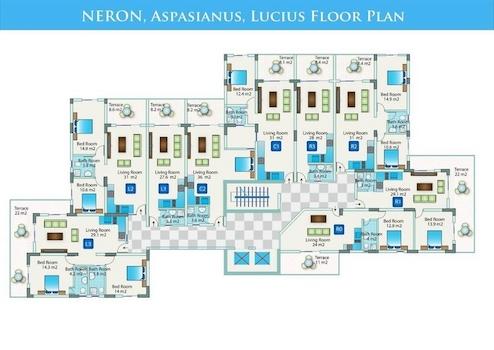 Quadratmeterangaben in brutto (vgl. England/USA), für die in Deutschland übliche Angabe (exkl. Balkon und Terrasse) sollten etwa 15 % abgezogen werden.