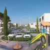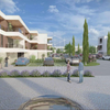 Die Wohnung befindet sich in einer modernen Wohnanlage mit mehreren Gebäuden, Grünflächen, Parkplätzen und Kinderspielplatz.