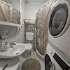 Die Wohnung nimmt die gesamte Etage ein, und der Dachboden über der Wohnung gehört ebenfalls zum Eigentum. Sie ist derzeit in zwei unabhängige Wohneinheiten unterteilt – jede mit einem Schlafzimmer, einem Badezimmer sowie einer Küche mit Essbereich.
