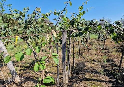 Das ebenerdige Grundstück befindet sich am Rande einer kleinen Gartensiedlung, verfügt über freie Flächen, aber auch Weinreben und ergiebige Kiwi-Pflanzen.