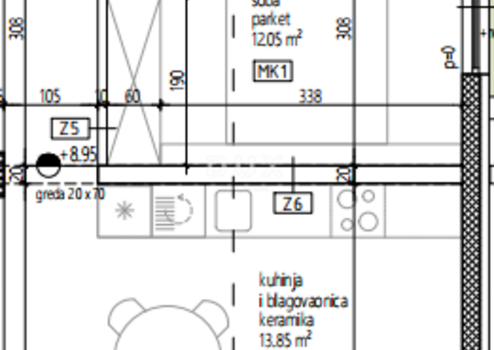 Im obersten Stockwerk des neuen Wohngebäudes befinden sich zwei identische Wohnungen mit einer Wohnfläche von 155 m² (Gesamtnutzfläche 180,25 m²).
