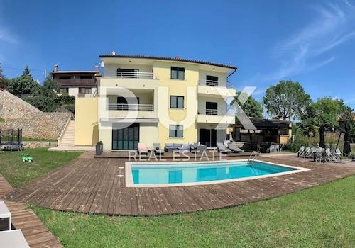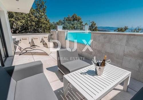 OPATIJA, POBRI – Doppelhaushälfte, 250 m², Panoramablick aufs Meer und 2 Dachterrassenpools + 400 m² Fläche