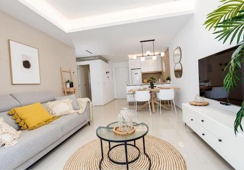 Luxus-Wohnungen mit 2 Schlafzimmern, 2 Bädern und Meerblick in exklusiver Anlage mit Außenpools und Wellness-Bereich nur 900 m vom Strand