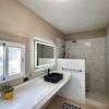 Das Badezimmer ist funktional und bietet eine ideale Grundlage für eine geschmackvolle Modernisierung nach eigenen Vorstellungen.
