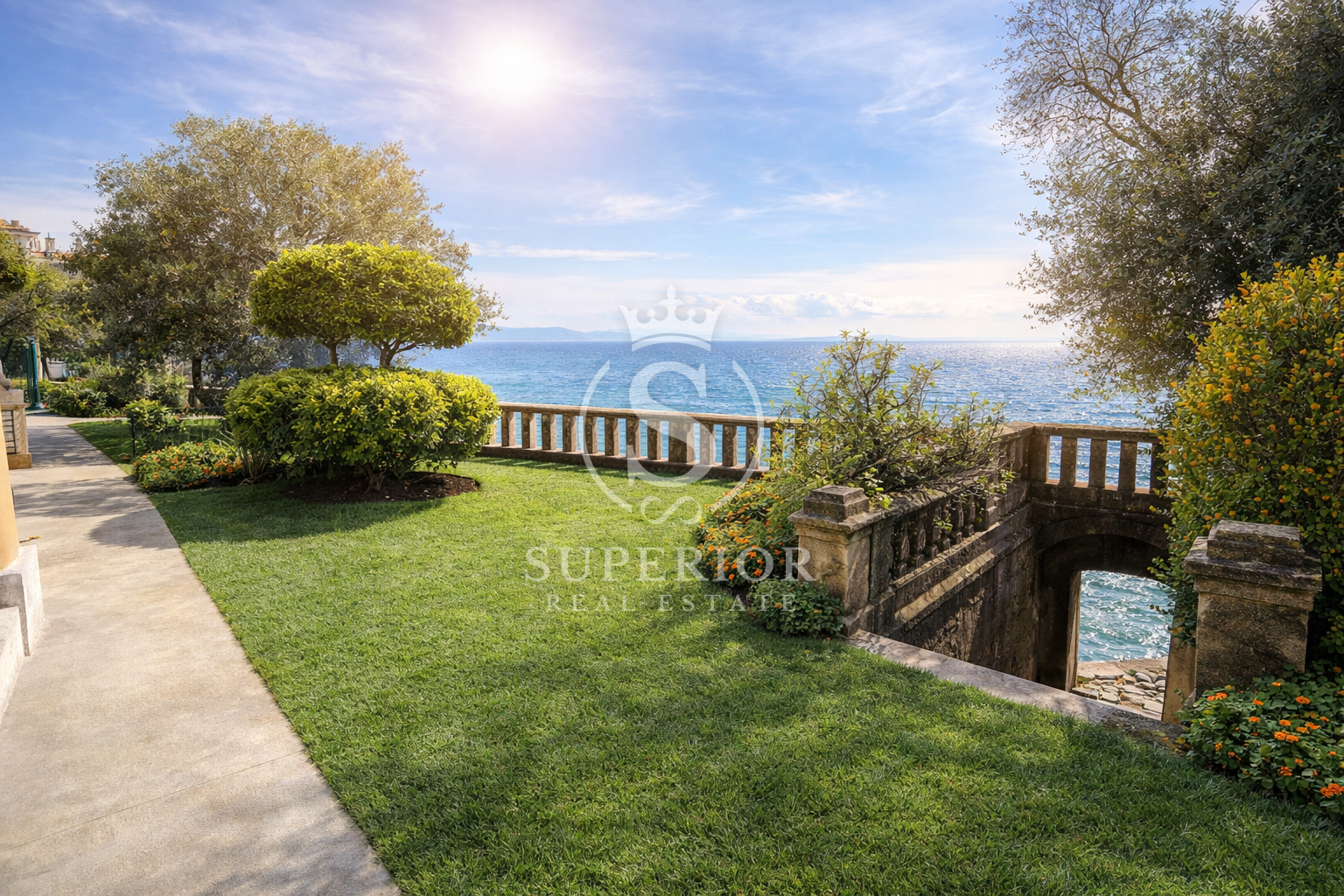 ✦ EIGENSCHAFTEN – österreichisch-ungarische Villa – erste Reihe am Meer – direkter Zugang zum Strand – hohe Decken und authentische Details – ruhige und prestigeträchtige Lage