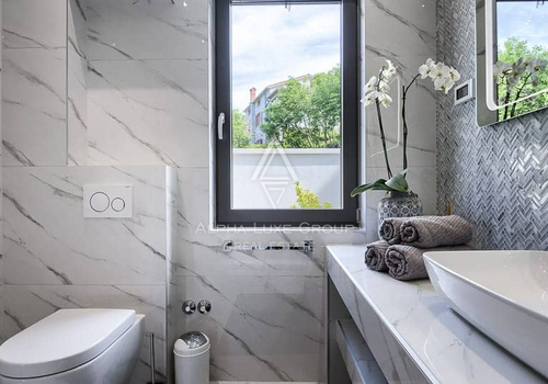 Construction quality is ensured through reinforced concrete structures, advanced insulation systems, and premium materials. The buildings feature high-performance façade systems, ventilated elements, and modern roofing solutions designed for durability and energy efficiency. Interiors include top-grade ceramics from Italian manufacturers, modern sanitary equipment, and customizable finishing options depending on the stage of construction. Large windows with electric shutters and mosquito nets ensure maximum comfort, while security entrance doors and intercom systems provide a high level of safety.