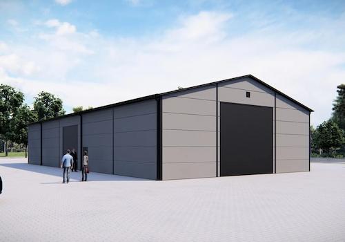 Eine Produktionshalle, Rohbau: •35 m x 15 m x 5 m •Dachneigung 20 Grad. •Ein Portalkran mit einer Tragfähigkeit von 3,2 t (Zone 2) bereits montiert. •Seitenstützen sowie Dachträger aus Doppel-T-Trägern und Fachwerken ...
