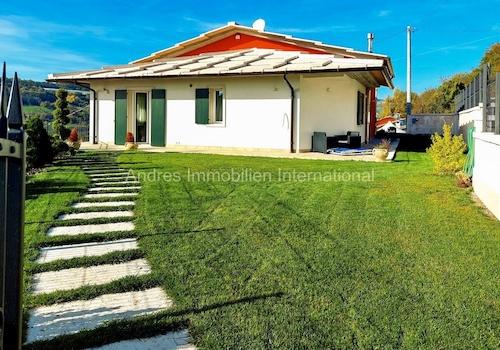 Die freistehende Villa in Corrubio di Sant'Anna d'Alfaedo genießt eine Panoramalage mit freiem Blick auf den Monte Baldo und das darunter liegende Tal. Durch seine Südwestausrichtung ist das Haus größtenteils ...
