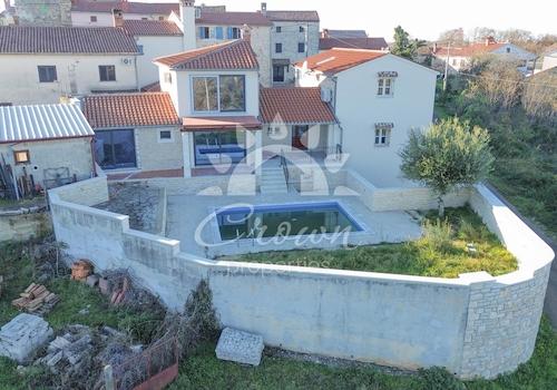 In einem ruhigen istrischen Ort in der Nähe von Svetvinčenat wird ein modernes Erdgeschoss mit Pool und herrlichem Meerblick verkauft. Das Haus wurde als hochwertiger Neubau konzipiert, dessen Fertigstellung für ...