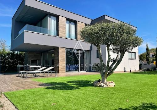 Beeindruckende Villa zum Verkauf, mit offenem Meerblick, Garten und Swimmingpool! Die Villa wurde 2018 erbaut, besteht aus Erdgeschoss und erstem Stock mit einer Gesamtfläche von 178,79 m2. Im Obergeschoss befinden ...