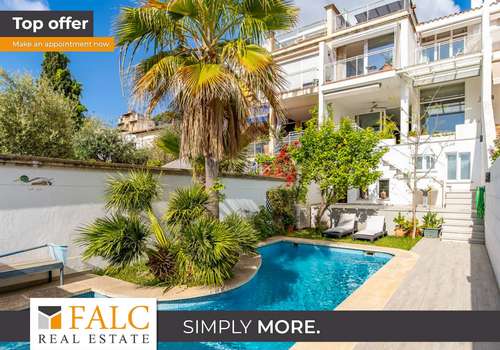 Dieses attraktive Reihenhaus in Palma befindet sich im aufstrebenden Viertel El Terreno und bietet herrlichen Meerblick von mehreren Terrassen sowie einen schönen Garten mit Pool. Das Haus ist von zwei verschiedenen ...