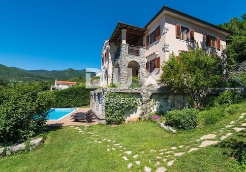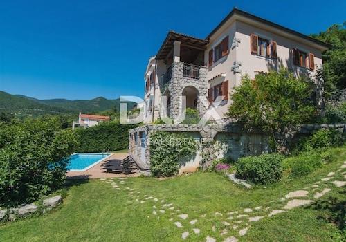 OPATIJA, VEPRINAC – charmantes Haus in einem ruhigen Dorf mit Swimmingpool und Panoramablick auf die Kvarner-Bucht