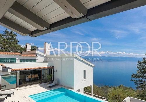 Veprinac, ein charmantes Haus mit besonderer Raumaufteilung, beheiztem Pool und wunderschönem Panoramablick auf das Meer. Das Haus steht auf einem m² großen Grundstück und erstreckt sich über 300 m² Wohnfläche auf zwei ...
