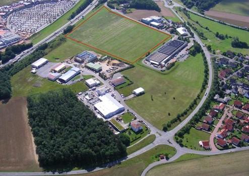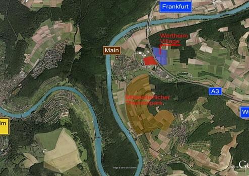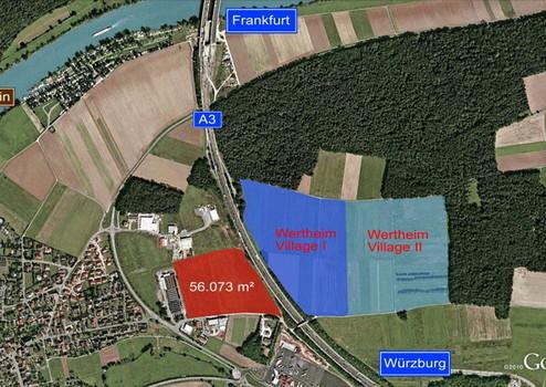 Wertheim Village: Zu erwerbende Gewerbehalle noch nicht vorhanden, mit dem letzten Gewerbegrundstück liegt direkt neben der A3 WÜ-FRA