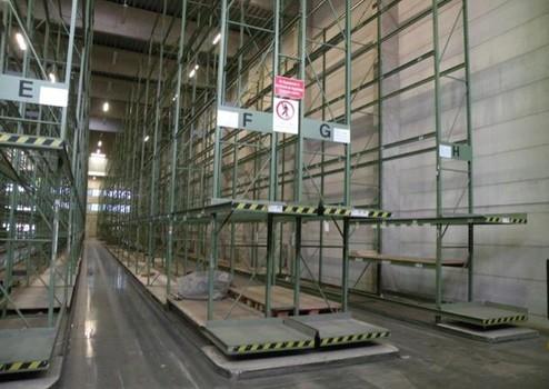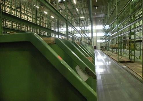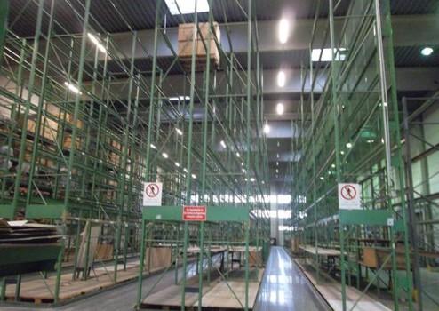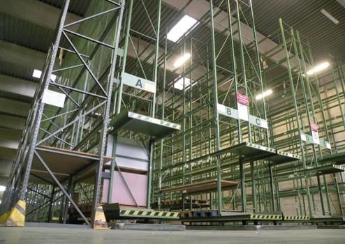 Rechteckig geschnittene, stützenfreie Halle mit 3 Sektionaltoren. Stahlbetonbau mit Trapezblech, Lichtbändern und Oberlichtern. Hallenhöhe 12 m, Lagerhöhe 7,50 m, da keine Sprenklereinrichtung vorgesehen ist, ca. 2.024 m² Nfl.