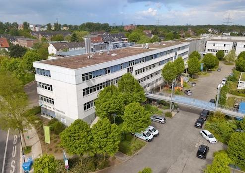 Das moderne Objekt bietet kleine bis große Büroräume, die Sie bei Bedarf mit Lager- oder Produktionsflächen kombinieren können. Der Gebäudekomplex umfasst eine Gesamtmietfläche von über 8.600 m² und lässt durch seine großen Fenster viel Tageslicht ins Innere.