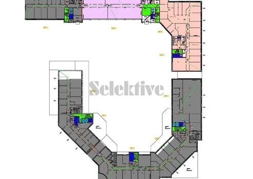 Der Parseval-Square ist in zwei Gebäudekomplexe mit vier separaten Eingängen und einem geräumigen Innenhof aufgeteilt.
