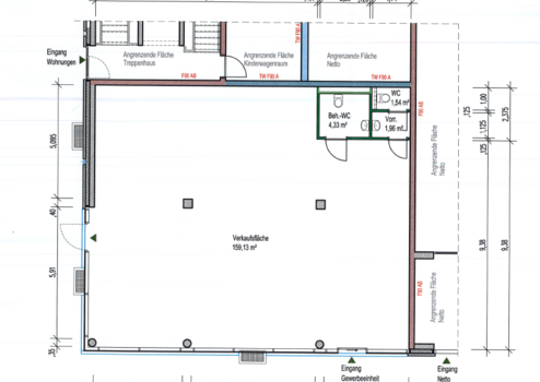 Die Geschäftsfläche mit insges.ca. 167 m² besteht z.Zt. aus einem großen Raum - ca. 160 m² mit nur 2 schmalen Stützen und ließe sich daher auch sehr gut aufteilen und 2 WC. Da sich diese Einheit noch im Rohbauzustand befindet, können Ausstattungswünsche noch Berücksichtigung finden.