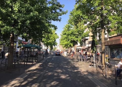 Die Geschäftsfläche wurde viele Jahre von Bäckerei Kamps genutzt mit ca. 42 Innensitzplätzen und ca. 32 Außen-Sitzplätzen auf dem breiten Bürgersteig.