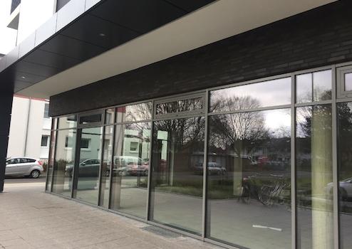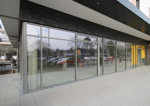 Die fast quadratische Gewerbefläche befindet sich in werbewirksamer Ecklage im Erdgeschoss eines architektonisch reizvollen und energieeffizienten Neubaus mit einem Lebensmitteldiscounter, Hausverwaltungsbüro und familiengerechten Wohnungen in den oberen Etagen. Bis auf die angebotene Fläche sind alle Einheiten vermietet. Der vorgelagerte Parkplatz ermöglicht gute Sicht auf die großzügigen Schaufenster insges. ca. 20 lfdm zur Präsentation.
