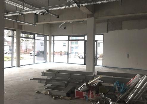 Die Geschäftsfläche mit insges.ca. 167 m² besteht z.Zt. aus einem großen Raum - ca. 160 m² mit nur 2 schmalen Stützen und ließe sich daher auch sehr gut aufteilen und 2 WC. Da sich diese Einheit noch im Rohbauzustand befindet, können Ausstattungswünsche noch Berücksichtigung finden.