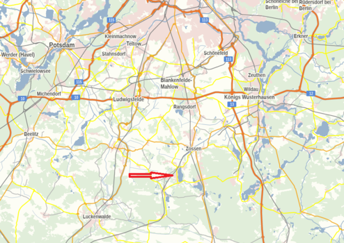 Lage: Am Mellensee OT Klausdorf ca. 30 km südlich von Berlin ca. 30 km bis Luckenwalde in ruhiger Dorfrandlage. Die B96 ist ca.6 km und A10 (südlicher Ring) ist ca. 25 km entfernt.
