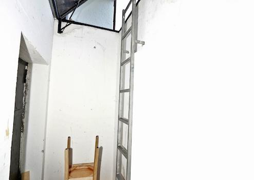 Den heutigen Sicherheitsanforderungen entsprechend gibt es einen Notausstieg nach draußen.