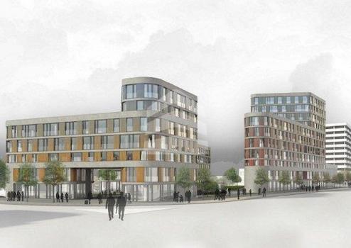 Das insgesamt über ca. 30.000 m² umfassende Wohn- und Geschäftsprojekt gliedert sich in 3 Gebäude. Hier entstehen insbesondere moderne Büro- und Praxisflächen, jedoch auch Einzelhandel, Gastronomie und Wohnungen. Das höchste Gebäude des geplanten Komplexes wird mit seinen zehn Stockwerken als Blickfang des Areals dienen. Unter diesem Flanierplatz ist eine zweite Ebene mit einer Tiefgarage mit ca. 200 Stellplätzen geplant.