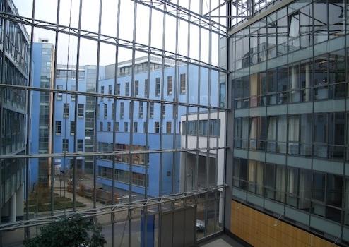Das Düsseldorf Business Center vereint rund 32.000 m² Büros, Läden sowie Wohnungen, Restaurants und ein Hotel. Durchdachte Funktionalität, selbständige Architektur und hochflexible Nutzungsvielfalt ergänzen sich aufs Beste. Moderner Büro- und Hotelkomplex, exklusive und außergewöhnliche Gebäudearchitektur mit Atrium und teilweise außenliegenden Glasaufzügen, repräsentatives Eingangsfoyer etc.