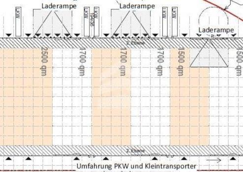 Es sind insgesamt Flächen in der Größe von 1.500 m² - ca. 10.600 m² verfügbar.