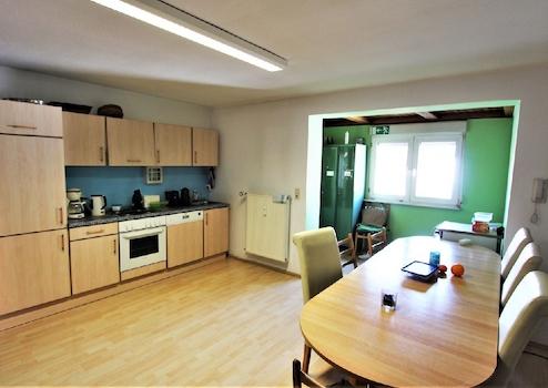 Im Obergeschoss befindet sich ein weiteres Büro, der Technikraum, ein großes Bad und die Küche (EBK vorhanden) mit Aufenthaltsraum für das Personal auf ca. 90m² Fläche.