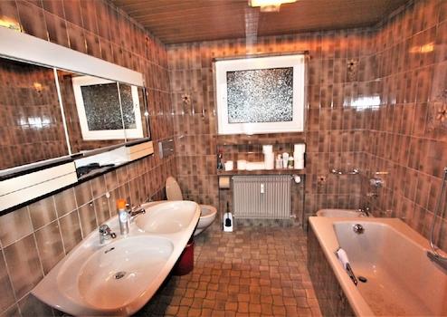 Zur weiteren Ausstattung gehört ein großer Kellerraum, ein überdachter Freisitz im Hof, des Weiteren eine Garage und vier Stellplätze im Hof.